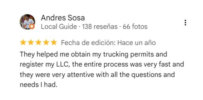 Todos los permisos legales requeridos para trabajar en la industria del transporte de forma local o interestatal. Incluye: